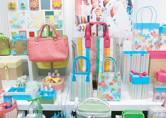 Deliverables: Set of multi-colored, multi-patterned pebbled faux leather bags, set of multi-colored wicker and faux leather bags, set of six paper printed Create Your Own gift bags, and a set of multi-sized gift set boxes.