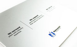 Deliverables: Modular brochure kit with magnetic brochures and magnetic metal base and belly band. Follow-up mailer folder contains new brochures to add to the existing magnetic kit.